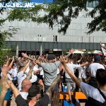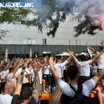 Eine gute Anzahl Blau-Weisser hatte sich bereits früh am OK-Platz im Zentrum der Stadt getroffen, wo Vertretern der Zwickauer-Fanszene ein Scheck in Höhe von 2.500eur an Spenden für die „Fussball gehört den Fans“ Crowdfunding-Kampagne zum Erhalt des Vereins übergeben wurden.