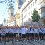 Von dort aus ging es via Marsch auf die Gugl, wo das Intro das Motto des Spiels – nein des Jahres – wiedergab: 97 HAT MAN UNS ALLES GENOMMEN, HEUTE HABEN WIR NICHTS ZU VERLIEREN“.