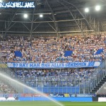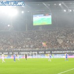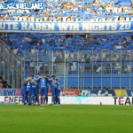 Die Heimischen ebenfalls mit einem Intro, mittels Überzieher. Beide Lager danach mit guten Auftritten – Halbzeit 2 wurde auf blau-weisser Seite mittels Pyro eingeleitet. Spielerisch gab es an diesem Tag nichts zu holen, leider schiesst Geld dann oftmals doch Tore… Dennoch wurden die Königsblauen bis nach Schlusspfiff gefeiert – der SKV ist wieder da!