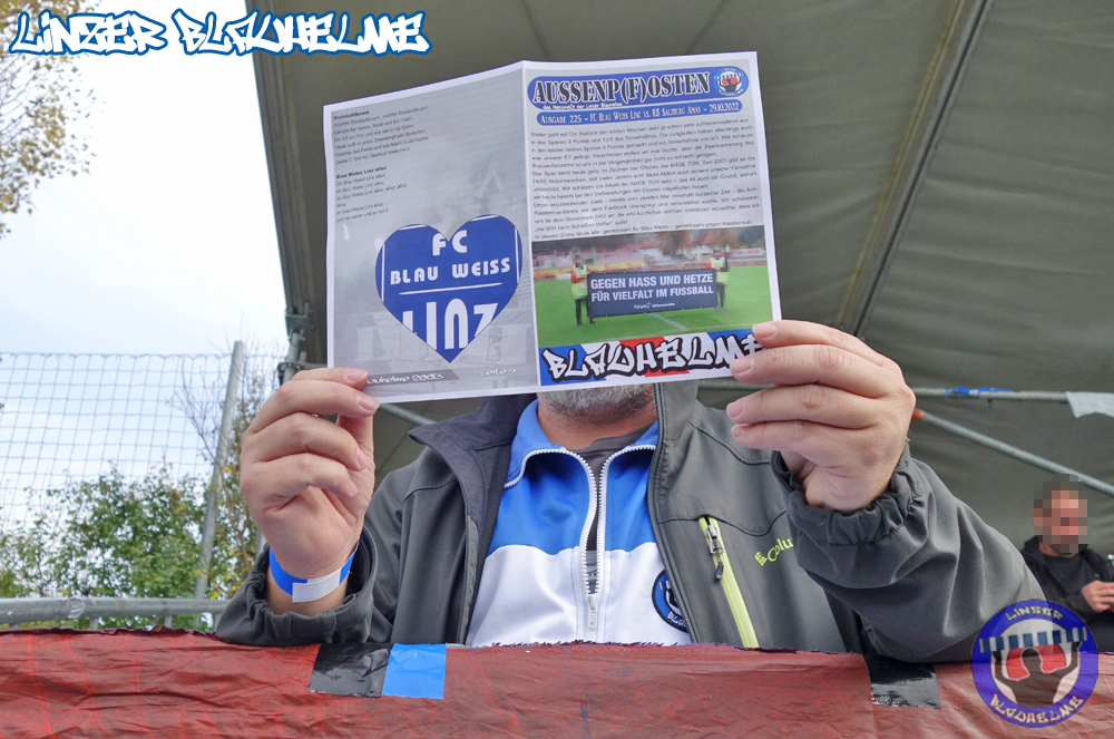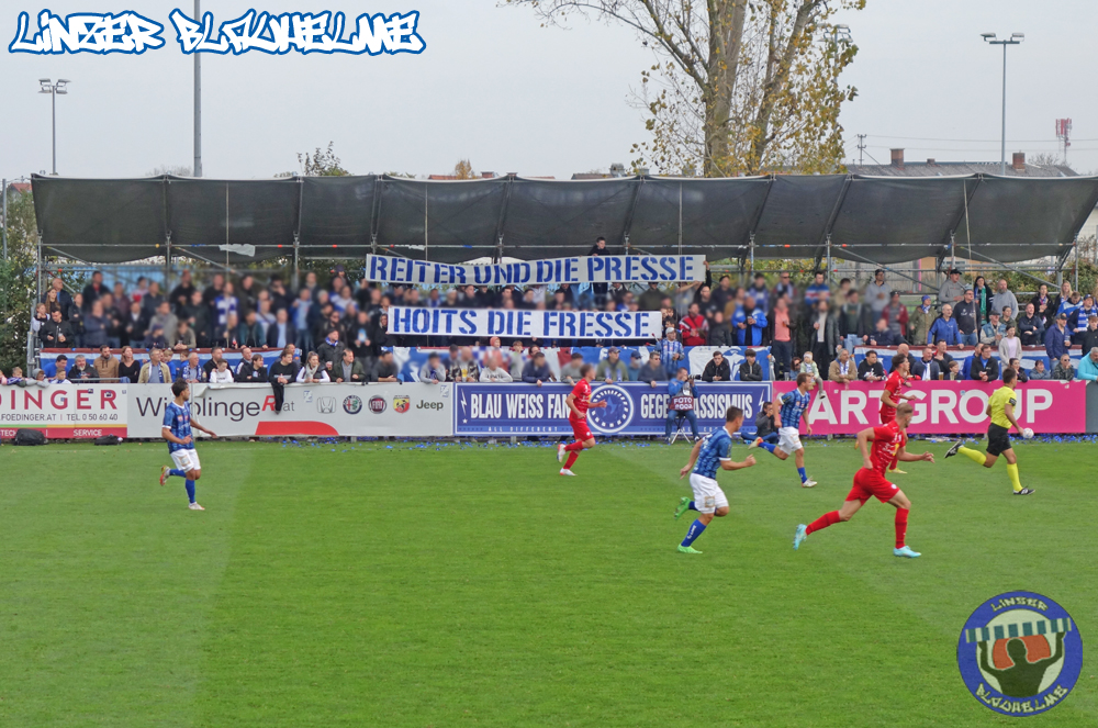 Einen klaren 4:0 Heimsieg gab es gegen die als FC Liefering auflaufenden Salzburger Jungochsen. Die königsblauen Treffer erzielten in einer beeindruckenden Partie Windhager und Seidl mittels Hattrick. Das Intro gestaltete die Arge ToR im Zuge der Fare-Aktionswoche. Später folgten von der Fanszene noch Spruchbänder zu aktuellen Themen.