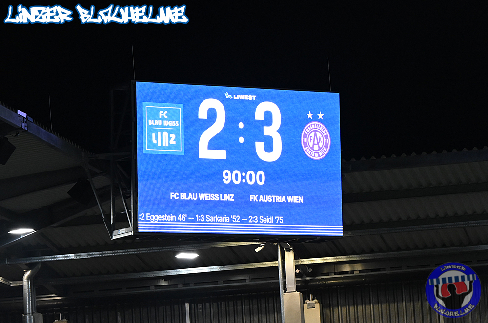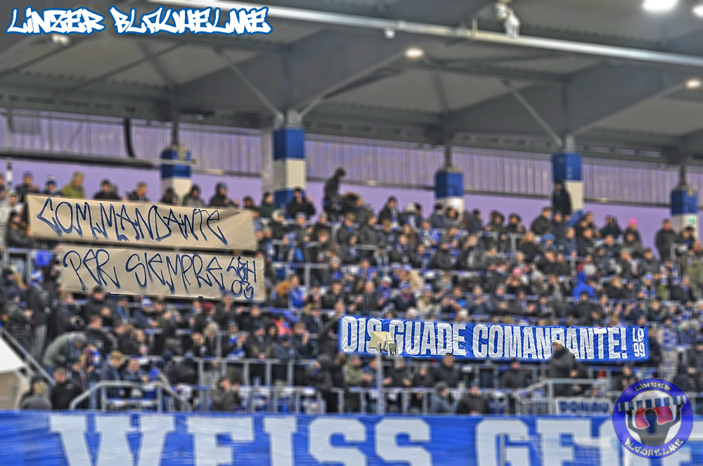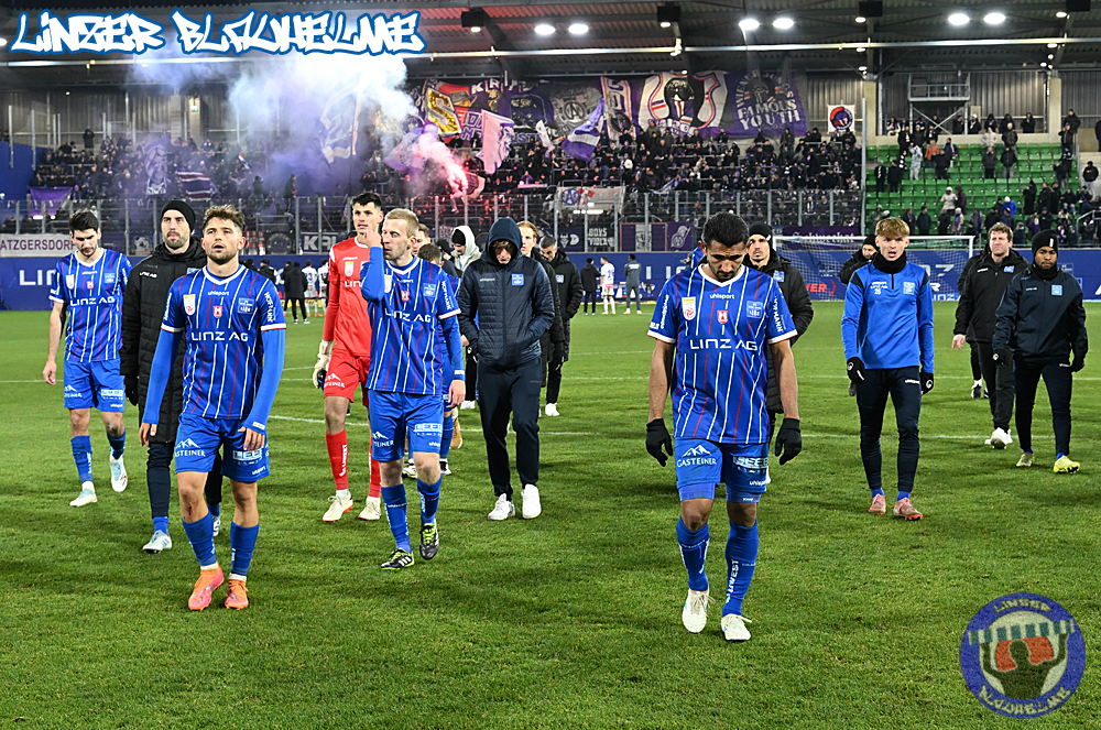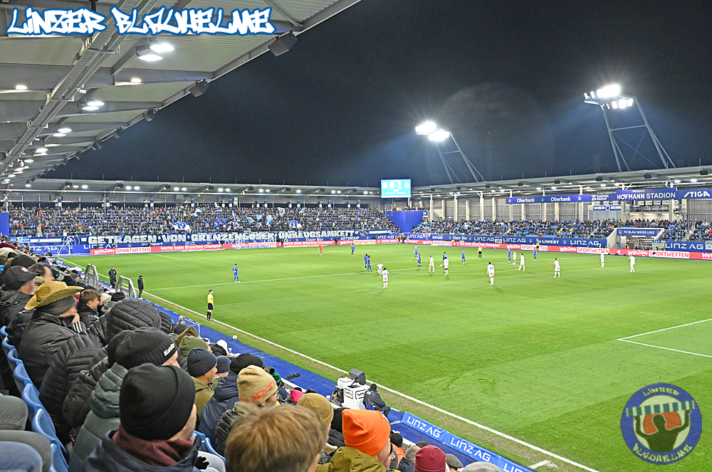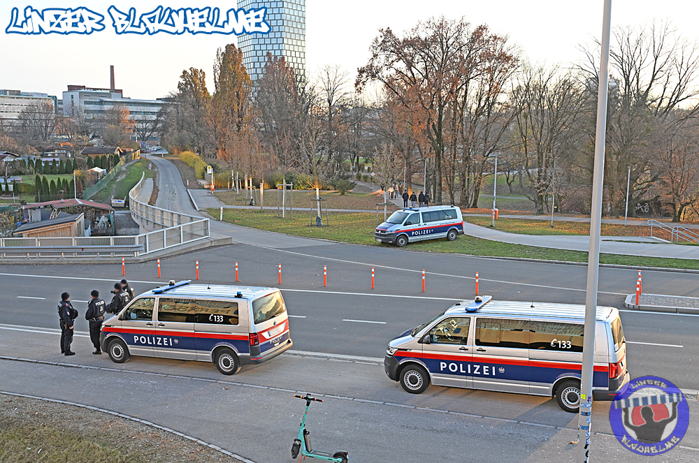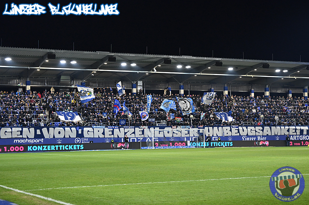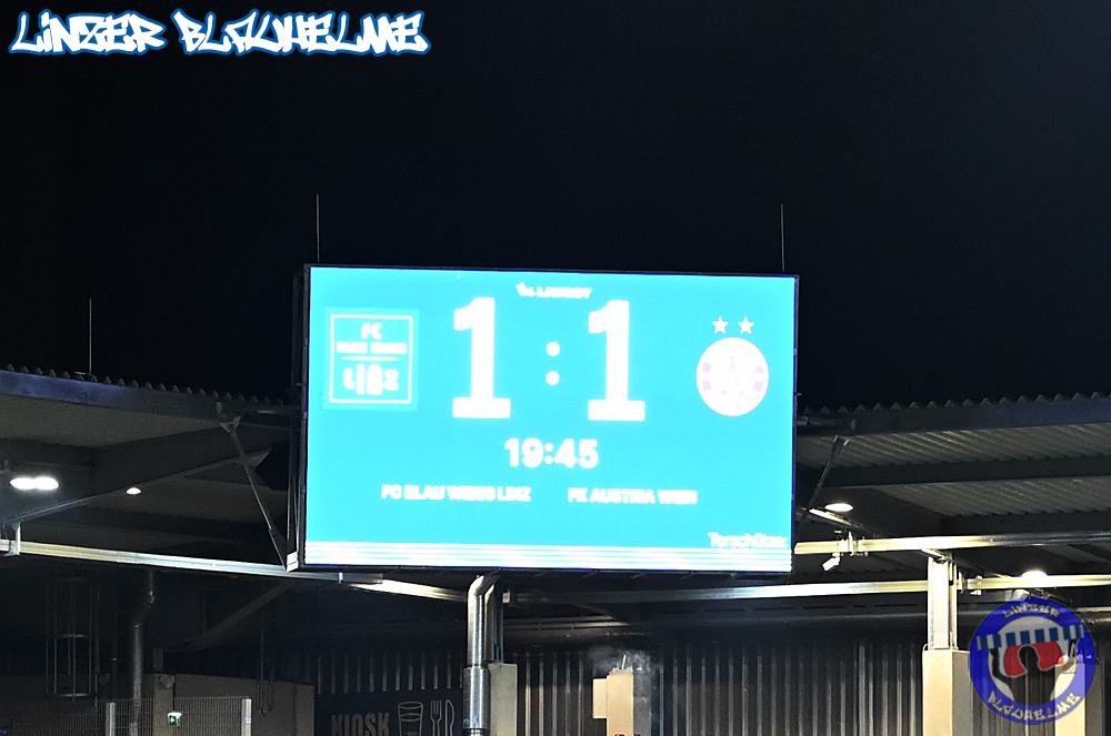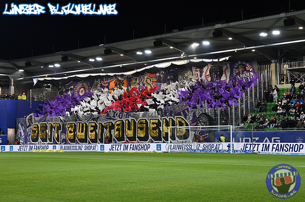 Das Gegenüber beging mittels mehrteiliger Choreo ein Jubiläum. Ebenfalls erinnert wurde an einen Fahnenklau in den 90ern, indem das damals erbeutete FC Linz Fans gegen Rechts Banner angezündet wurde. Man hätte 30 Jahre Zeit gehabt um über die eigene Dummheit nachzudenken, hob sie nun aber auf ein nochmal tieferes Level.
