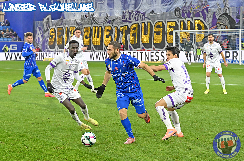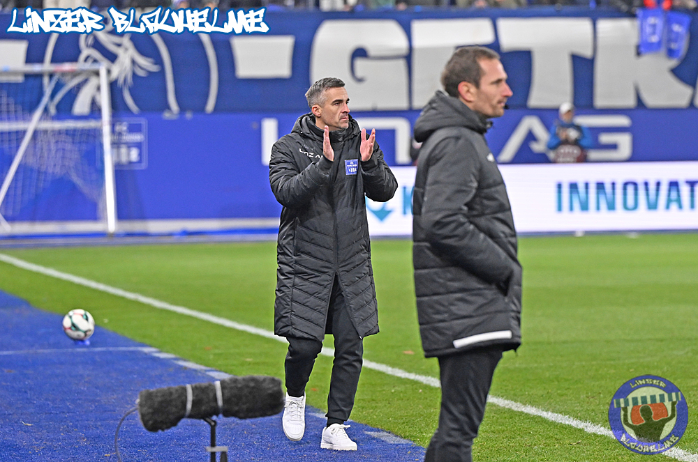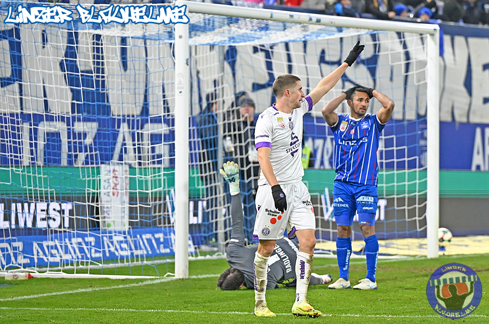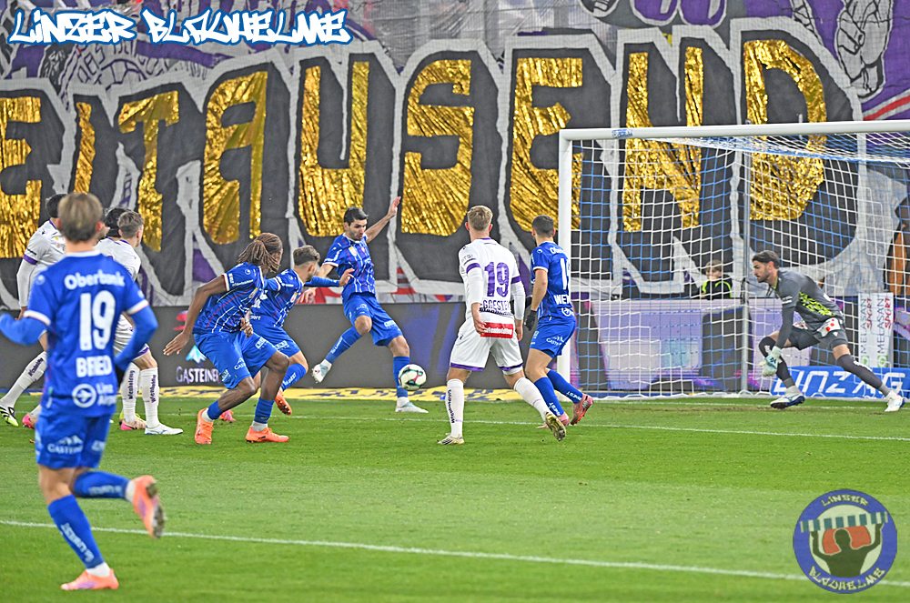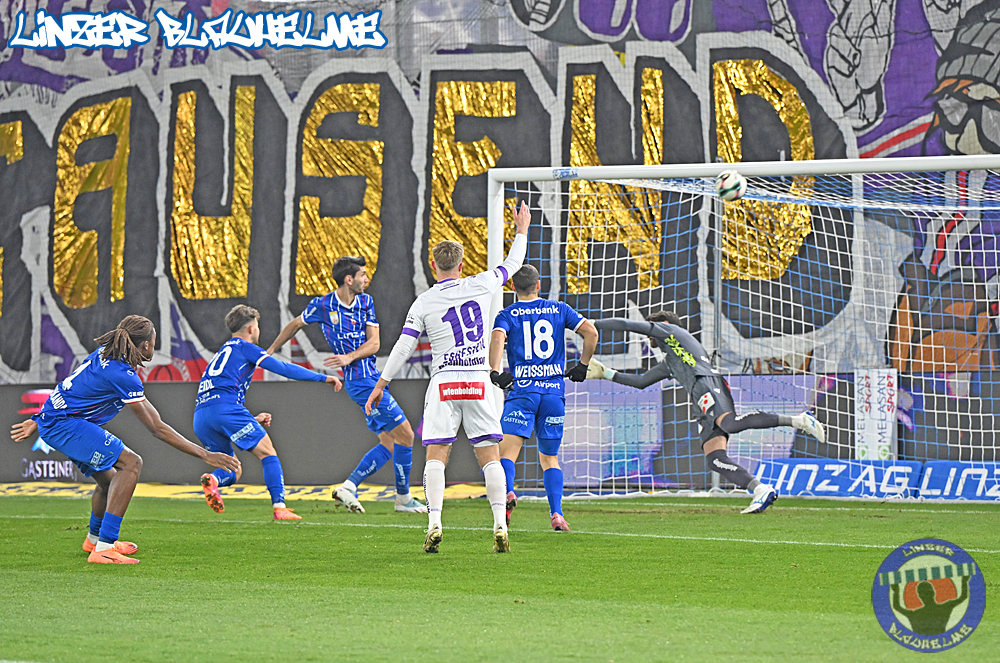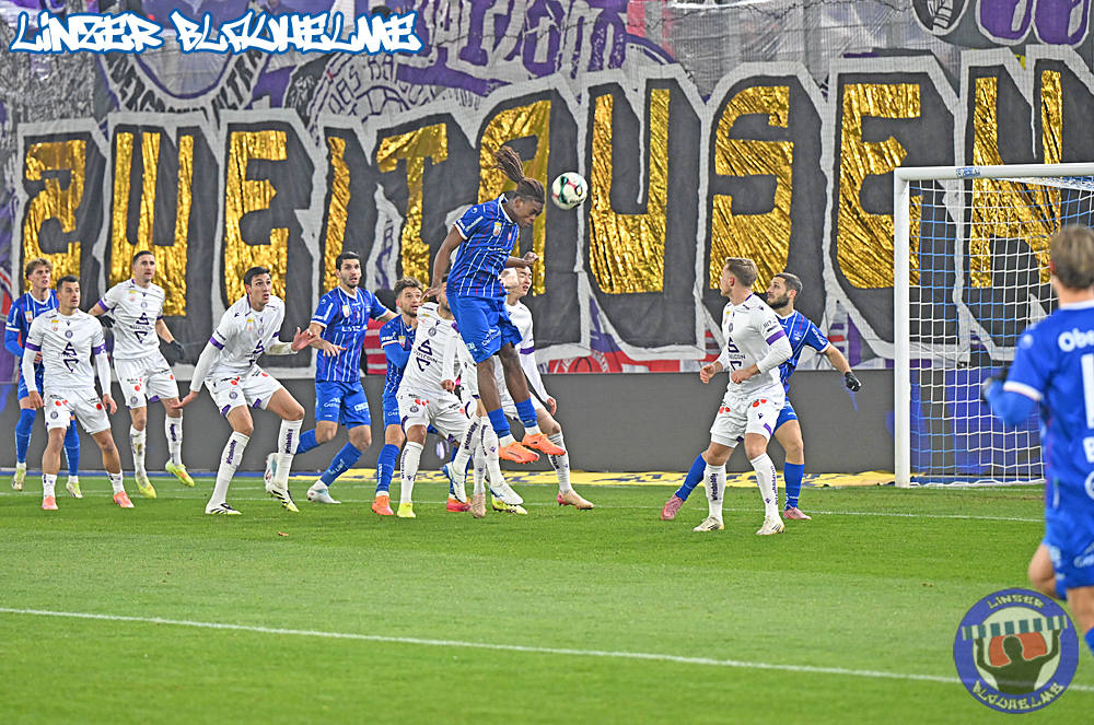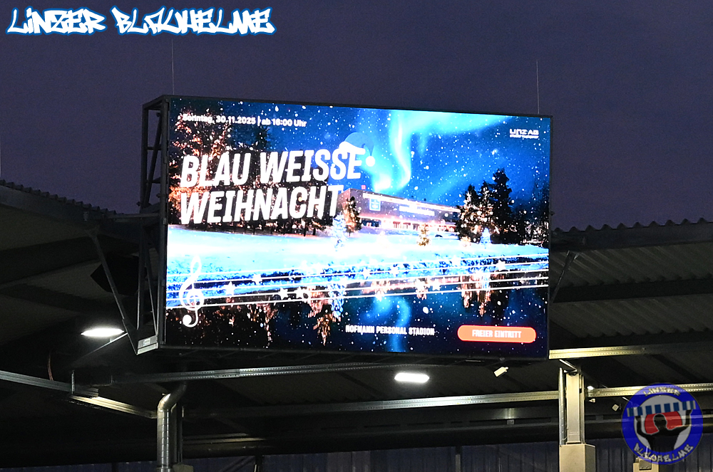 Das Gegenüber beging mittels mehrteiliger Choreo ein Jubiläum. Ebenfalls erinnert wurde an einen Fahnenklau in den 90ern, indem das damals erbeutete FC Linz Fans gegen Rechts Banner angezündet wurde. Man hätte 30 Jahre Zeit gehabt um über die eigene Dummheit nachzudenken, hob sie nun aber auf ein nochmal tieferes Level.