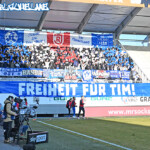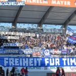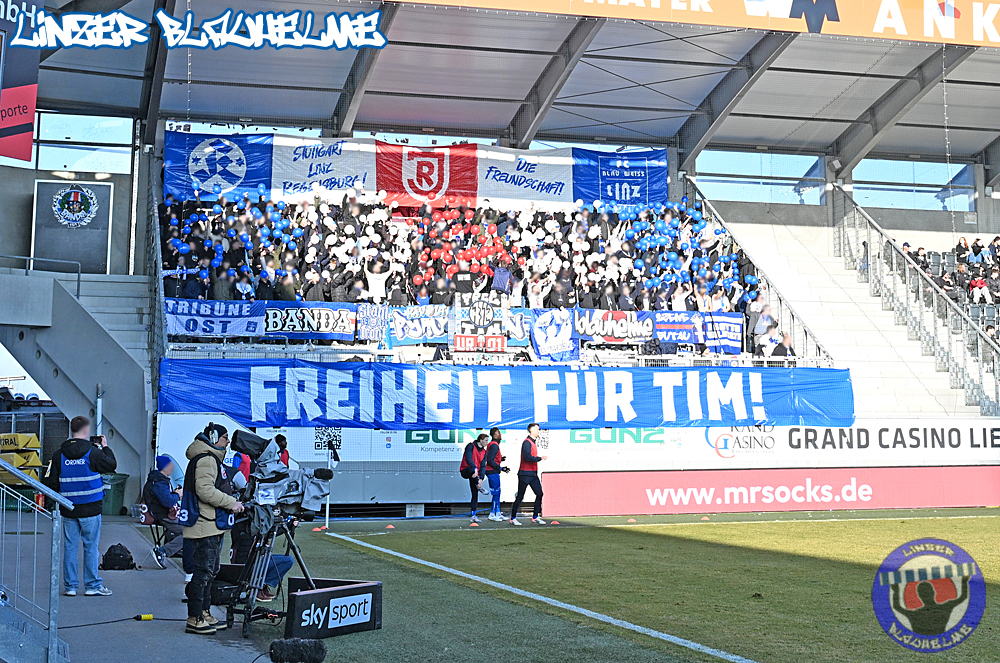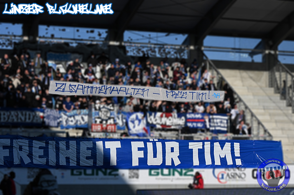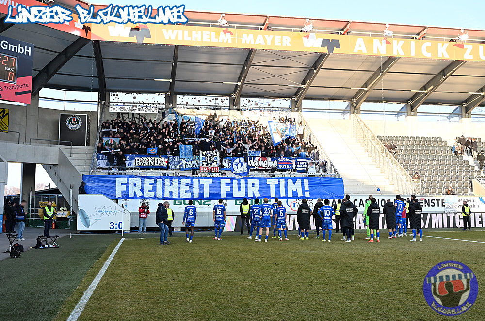 Zum Wiederanpfiff setzte LP noch ein Zeichen an die zahlreich angereisten Freunde aus Stuttgart und Regensburg. Gemeinsam von LP/ BA/ BF und uns LBH wurden anschliessend Durchhalteparolen an ein Mitglied der Szene gesendet.